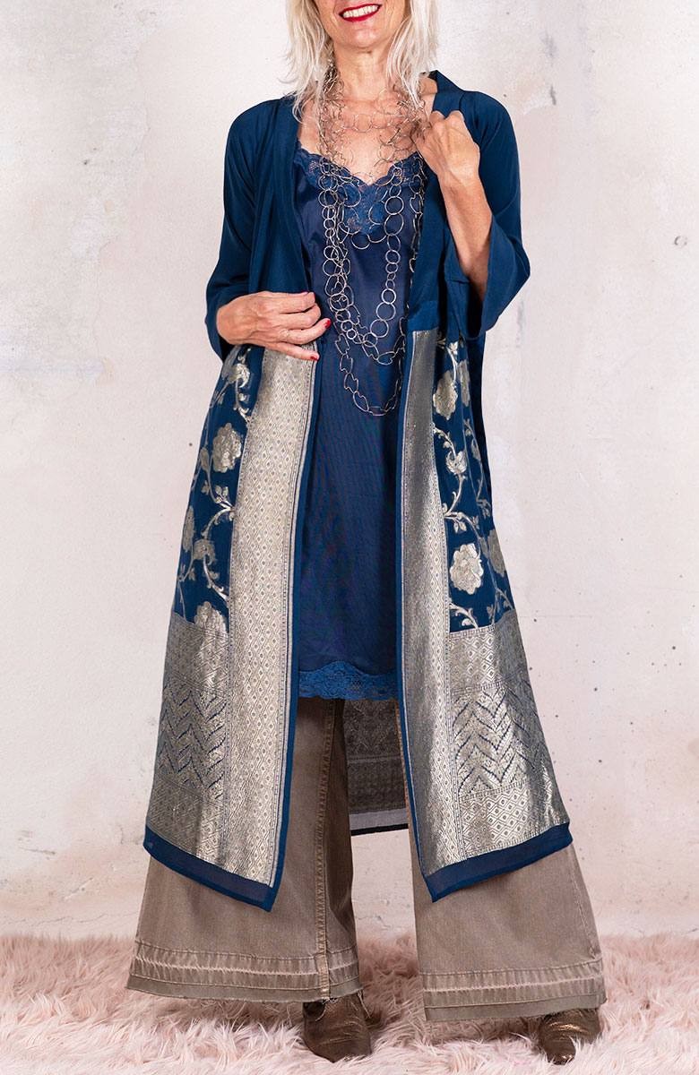 A coat? A dress? Both: a Dress Coat. Made of brocade from Varanasi, where the most beautiful silk br