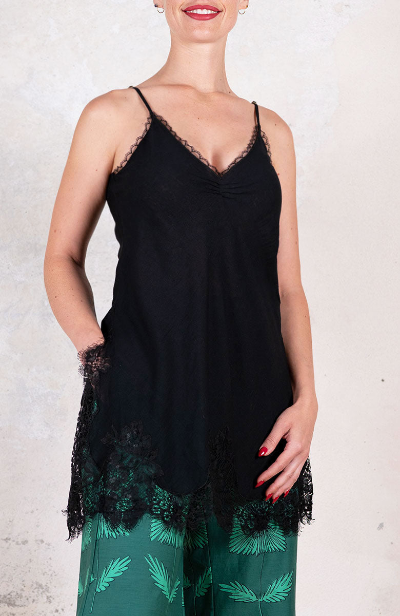 This slip in lightweight Indian kadhi features thin, adjustable straps and impeccably symmetrical la