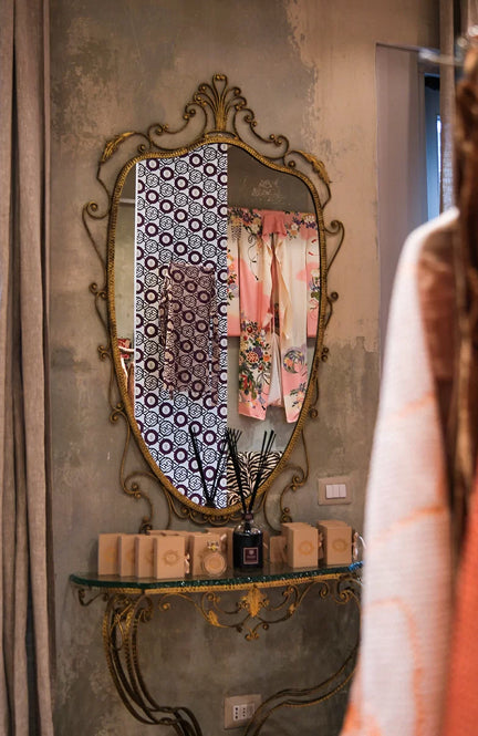 Vicino a Brera, silenziosa, in un cortile segreto che profuma di glicine e gelsomino. La Residenza è un paese delle meraviglie destinato alla trasformazione costante, alla sorellanza, alla sorpresa. Tra fiori delicati, cornici, tessuti nomadi e rami sospesi, potrai immergerti nell’universo Raptus, in una parentesi di cura e gentilezza nel bel mezzo della città, per far tuoi gli ultimi Raptus, ordinare i tuoi Raptus su misura, creare con noi il tuo Pezzo Unico.