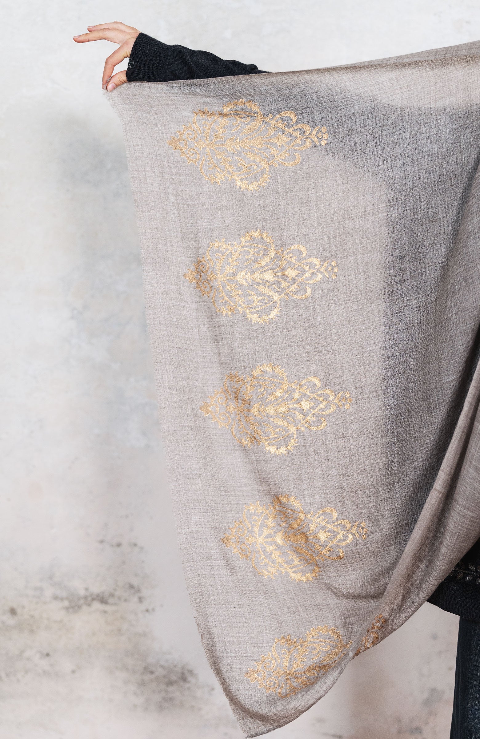 Stola di pashmina in lana melange molto sottile. Essenziale. Calda, leggera, morbida, avvolgente. Pr