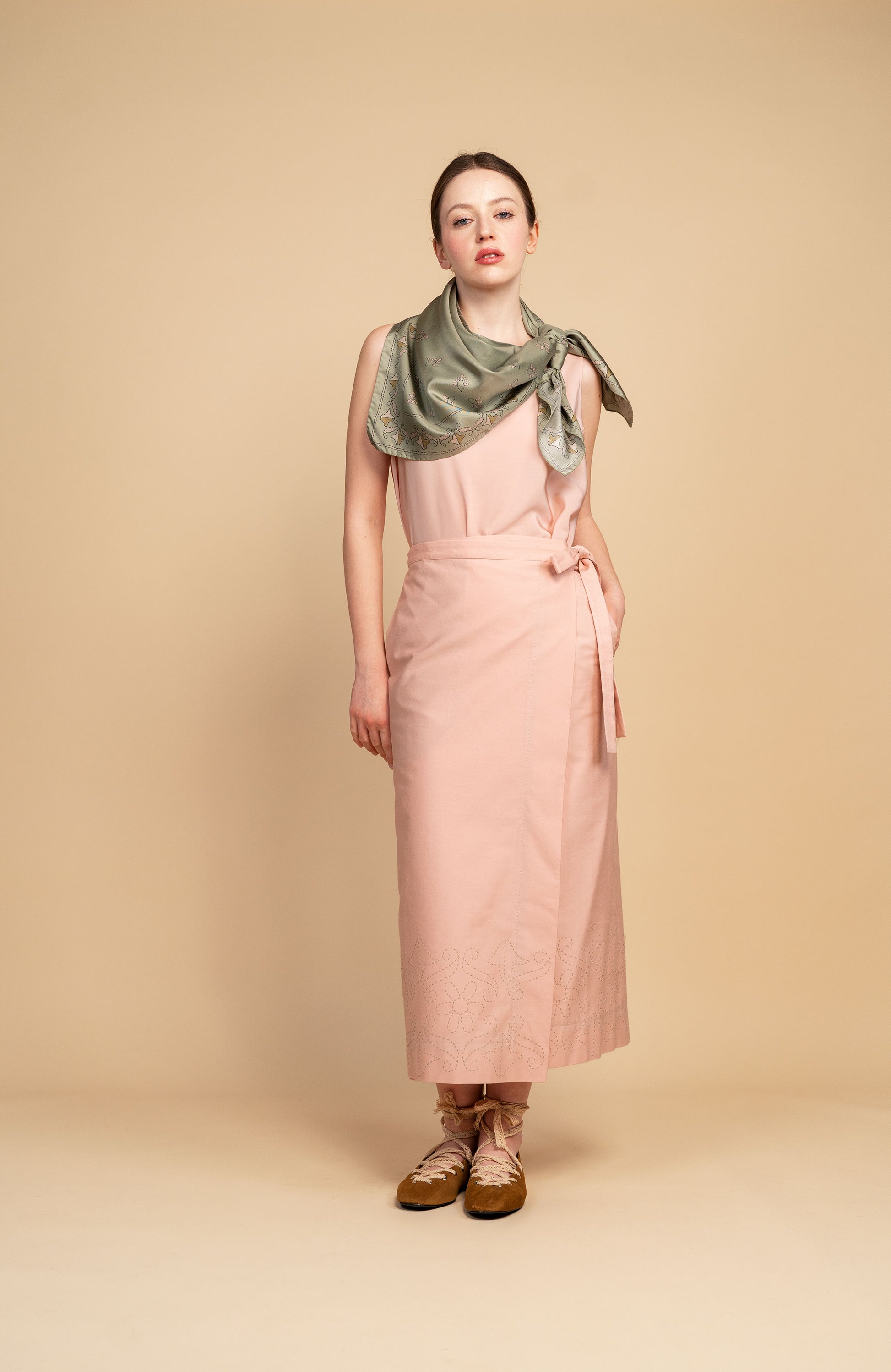 La Gabardina Ricamata Urban Skirt è una gonna portafoglio dalla forma essenziale e dall’anima metrop