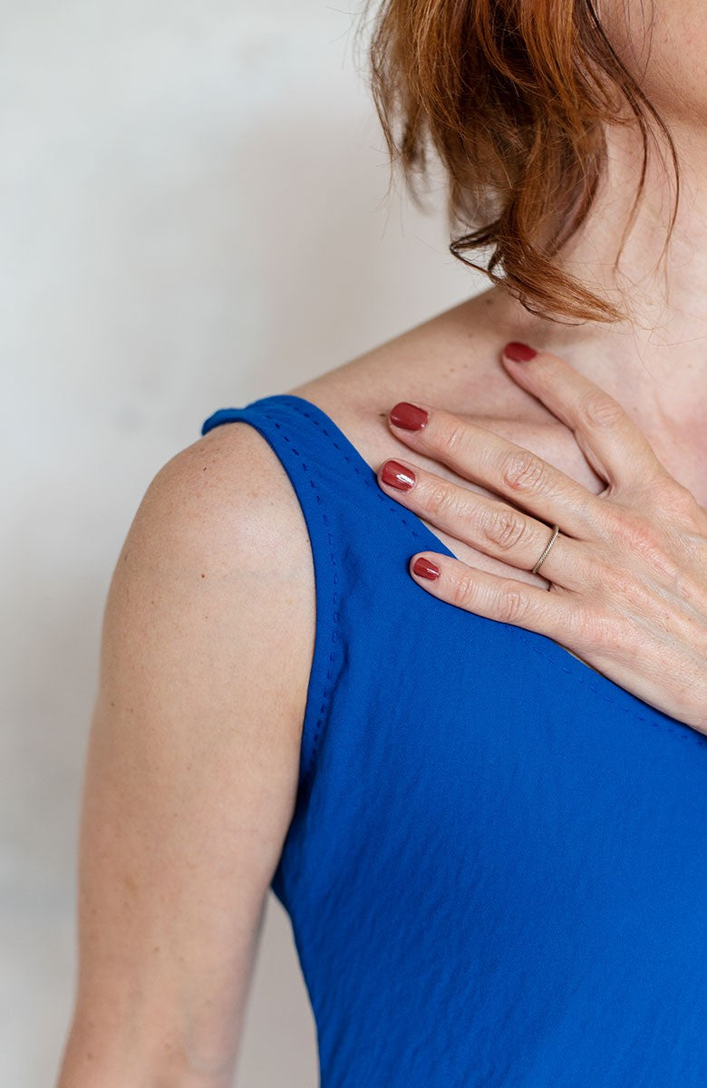 Vestito senza maniche con scollo profondo. E’ l'abito perfetto, scivola fluido e liquido sul corpo e