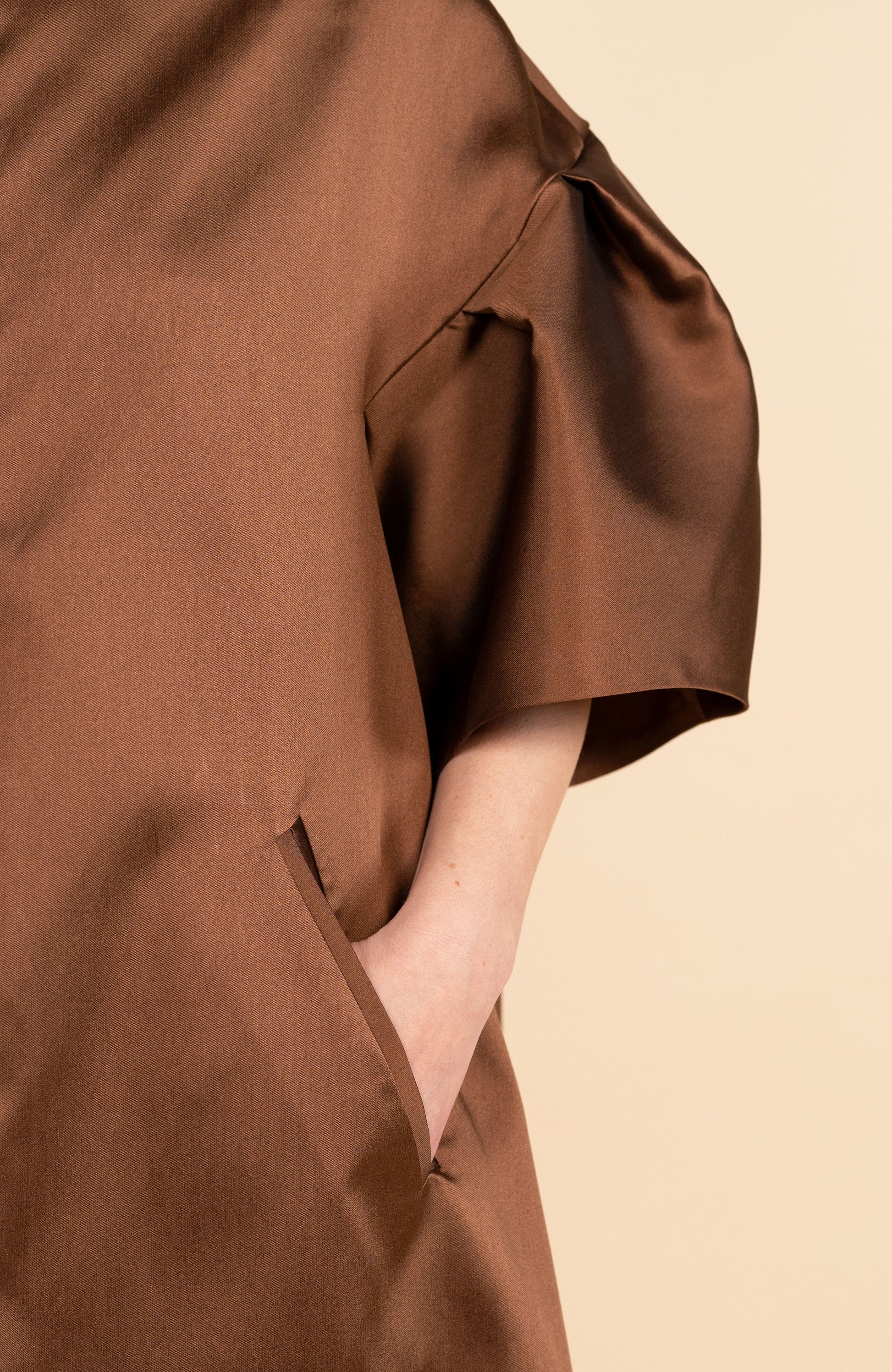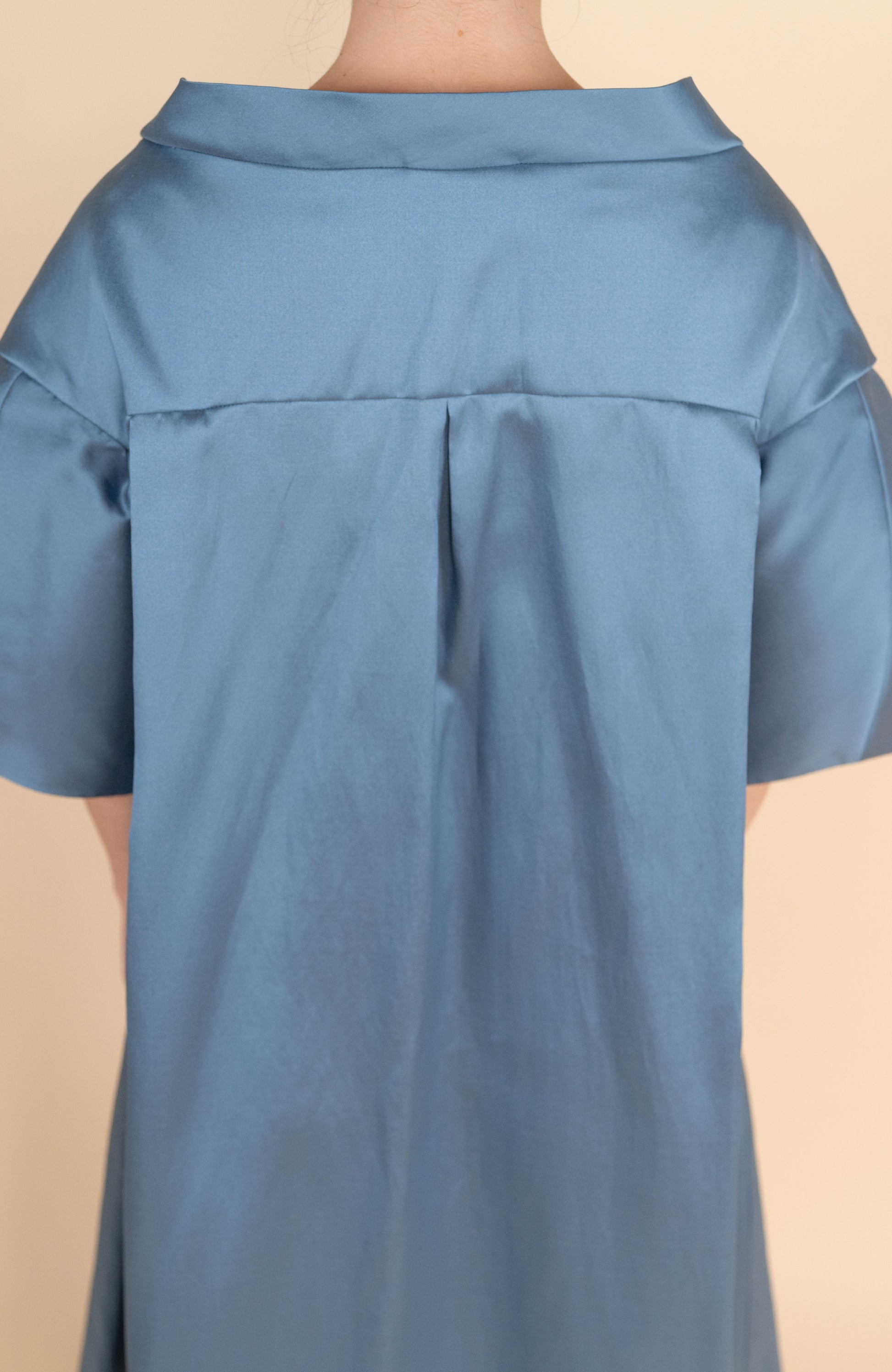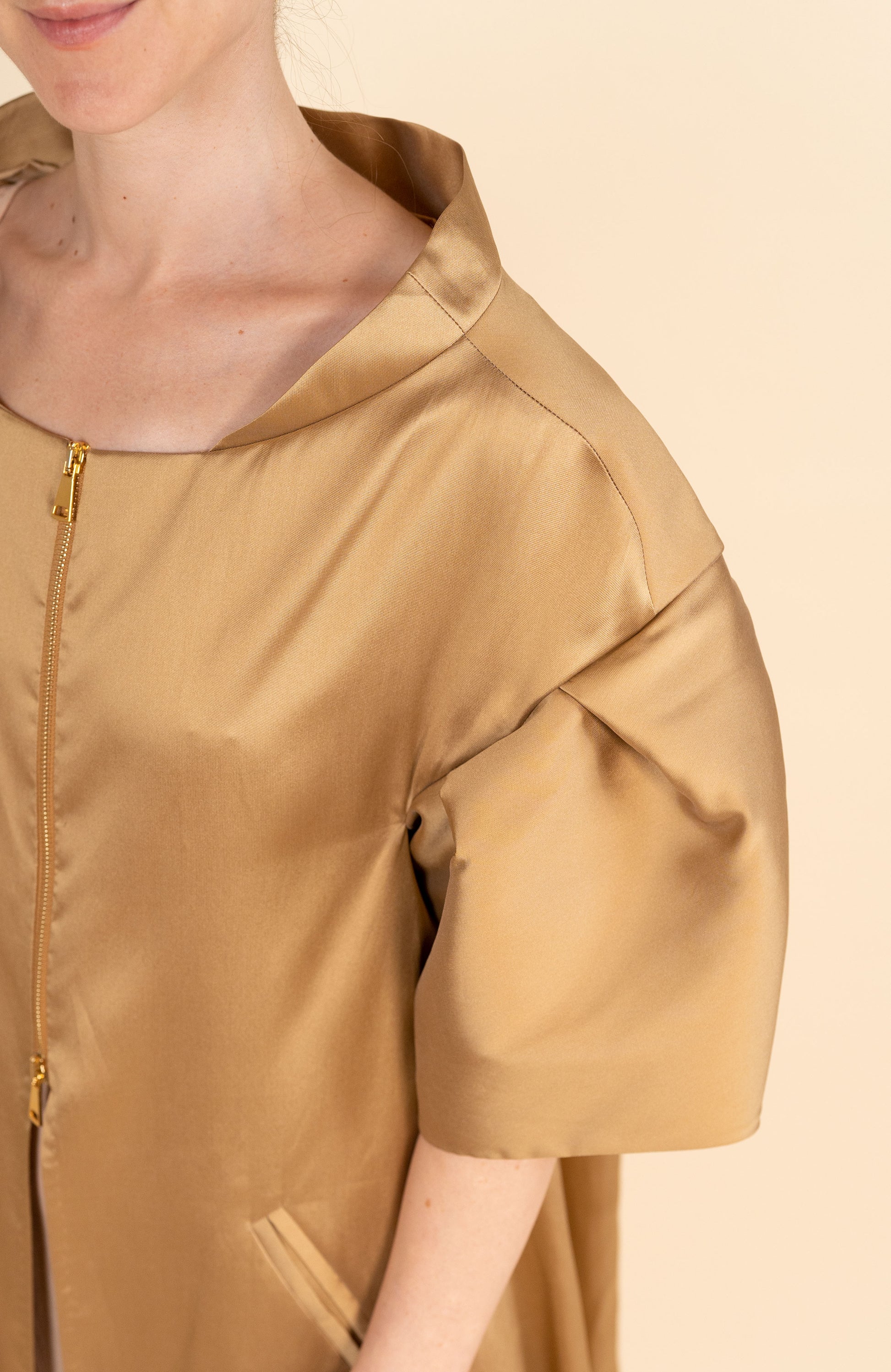 Cappa lunga tinta unita in mikado, tessuto realizzato secondo un'antica tecnica giapponese, che rend