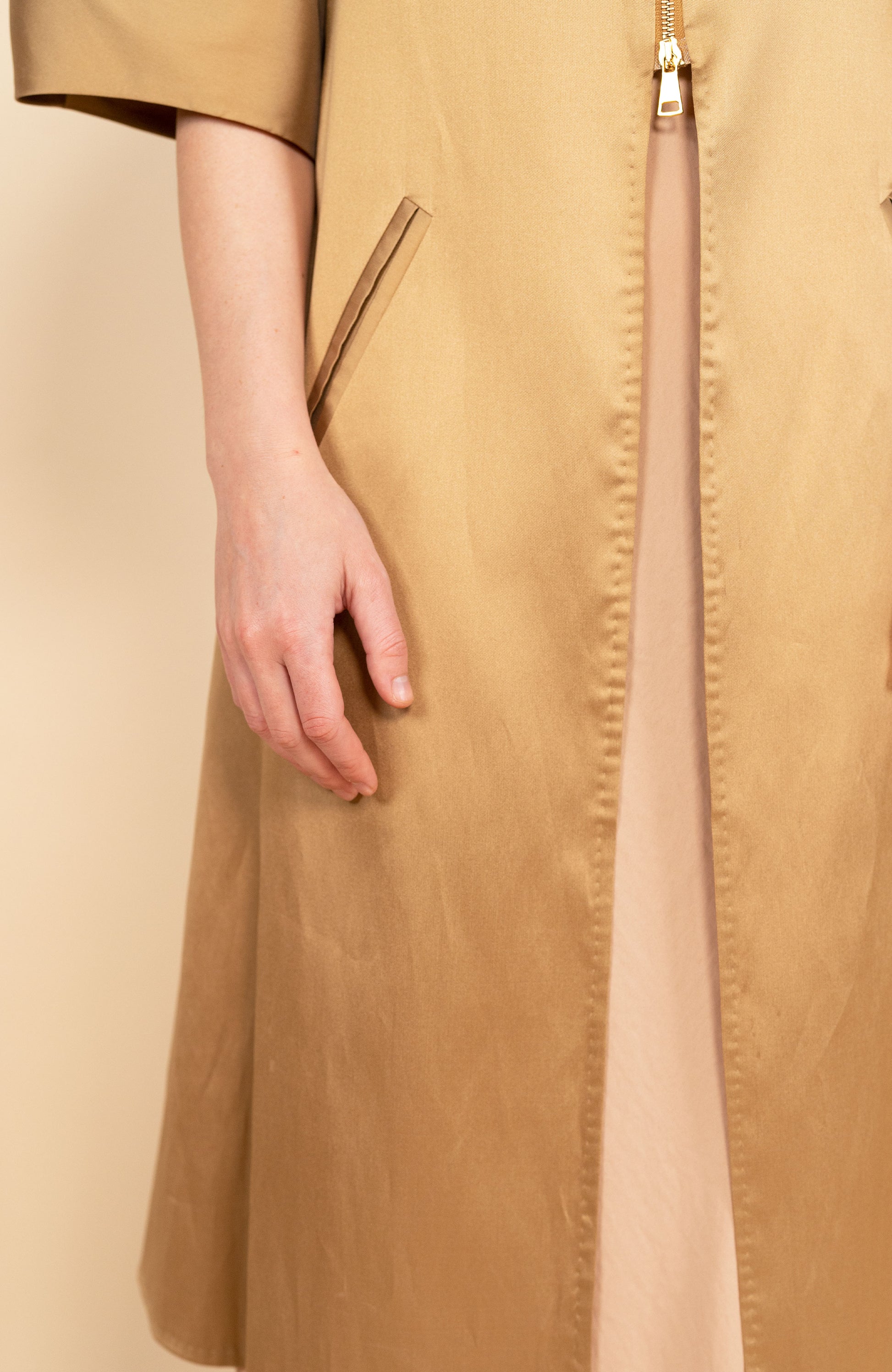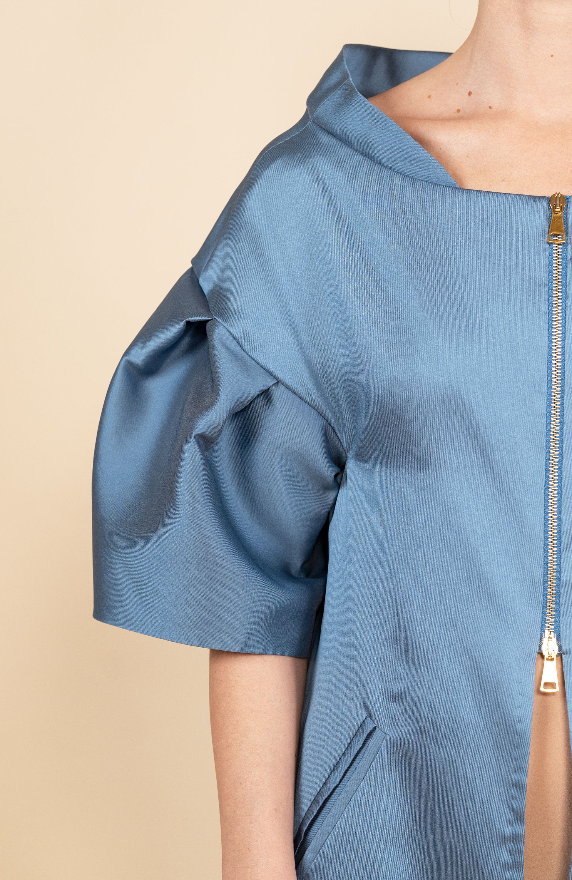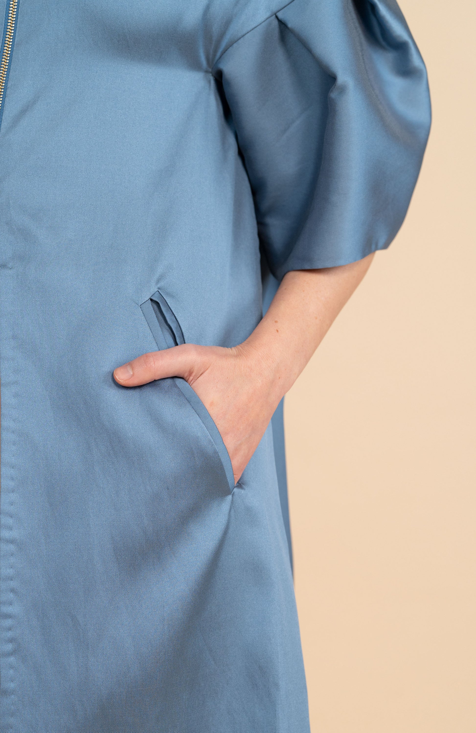 Cappa lunga tinta unita in mikado, tessuto realizzato secondo un'antica tecnica giapponese, che rend