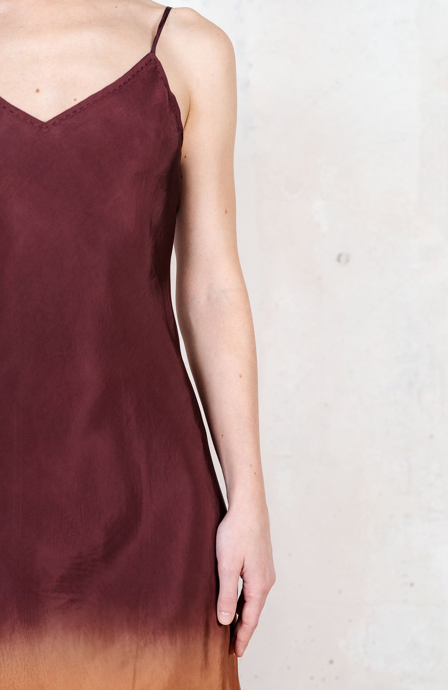 La Perfecta Sottoveste è un abito che nasce dalla destrutturazione di una sottoveste anni 30. È tagliata in sbieco, segue le curve del corpo e le avvolge - senza segnarle –. Il suo tessuto è liquido e croccante. La spallina sottile è regolabile, per adattarla al tuo scollo. E se l’avessimo ritinta, donandole un’identità degradée,con un’azione di upcycling?